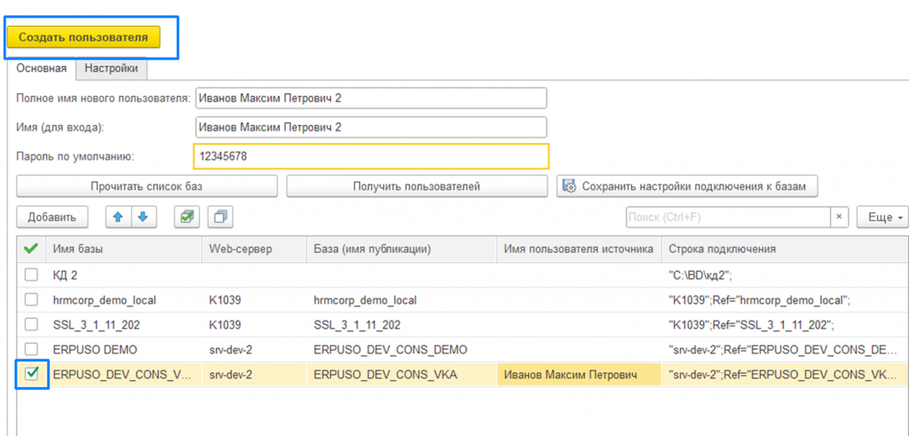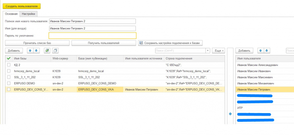 Если в какой-либо базе нет Иванова, то имя пользователя источника останется пустым. В этом случае, мы вольны указать другого пользователя-источника прав, с похожими профилями доступа.