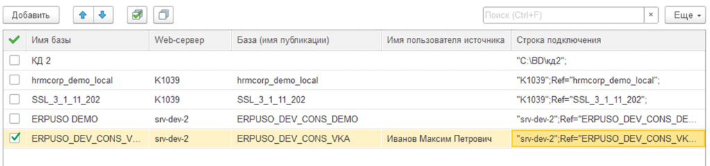 Стоит отметить, что имя пользователя источника заполнится не только в строке, из которой мы выбирали, но и в других строках баз, где есть пользователь с таким именем.