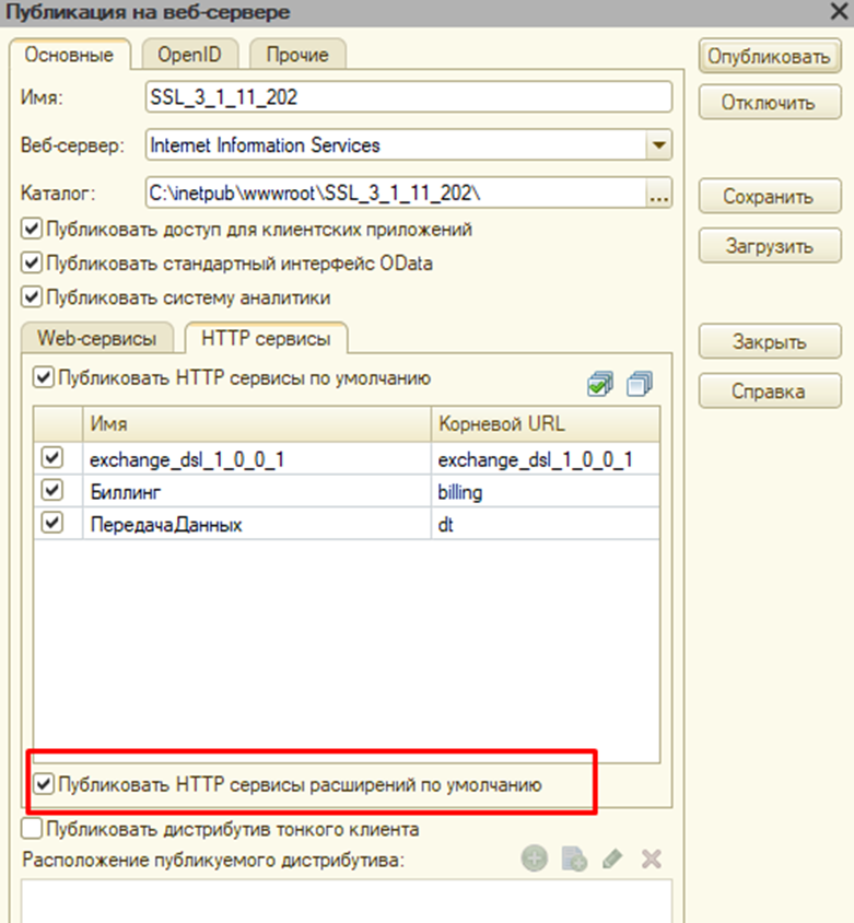 Предварительно во все базы компании (потребители пользователей) размещаем расширение и публикуем HTTP сервис, который в нем содержится (достаточно при публикации базы установить флаг «Публиковать HTTP сервисы расширений по умолчанию»).