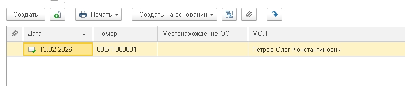 Автоматическое заполнение табличной части документа инвентаризации ОС: при запуске команды существующая табличная часть очищается, по выбранной дате, организации, местонахождению и МОЛ подбирается перечень основных средств и их остаточная/восстановительная стоимость по данным учёта.