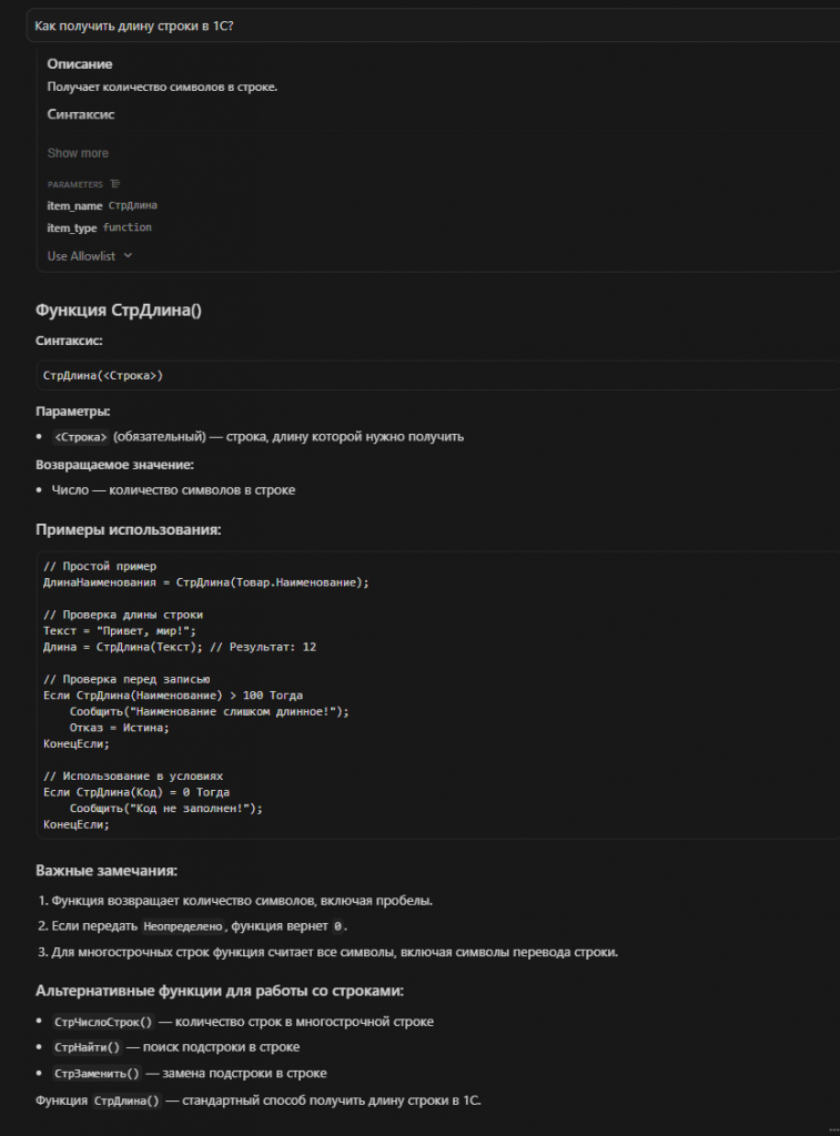 Пользователь: "Как получить длину строки в 1С?"