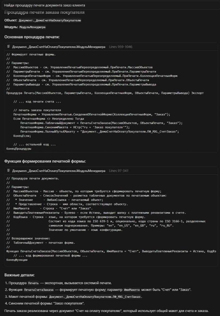 Пользователь: "Найди процедуру печати документа заказ клиента"