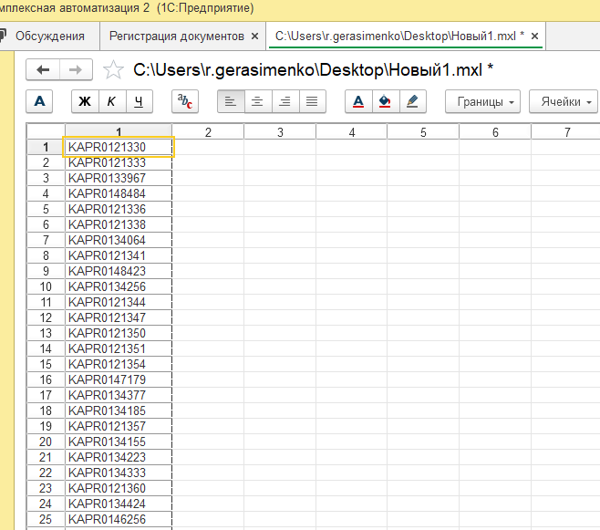 Регистрация документов по номерам для обмена данными. Загрузка списка номеров из файла