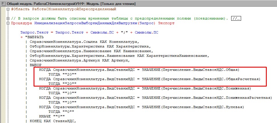 При выгрузке номенклатуры выполняется запрос, где не учитывается ставка НДС 22%.
