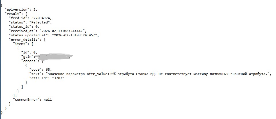 Ошибка заполнения атрибута "Ставка НДС" (идентификатор Национального каталога: 3787): Значение параметра attr_value:20% атрибута Ставка НДС не соответствует массиву возможных значений атрибута. Идентификатор фида Национального каталога: 327094974. Статус фида можно получить по адресу: https://апи.национальный-каталог.рф/v3/feed-status?apikey=&feed_id=327094974&verbose=1, подставив вместо фактическое значение Вашего apikey.