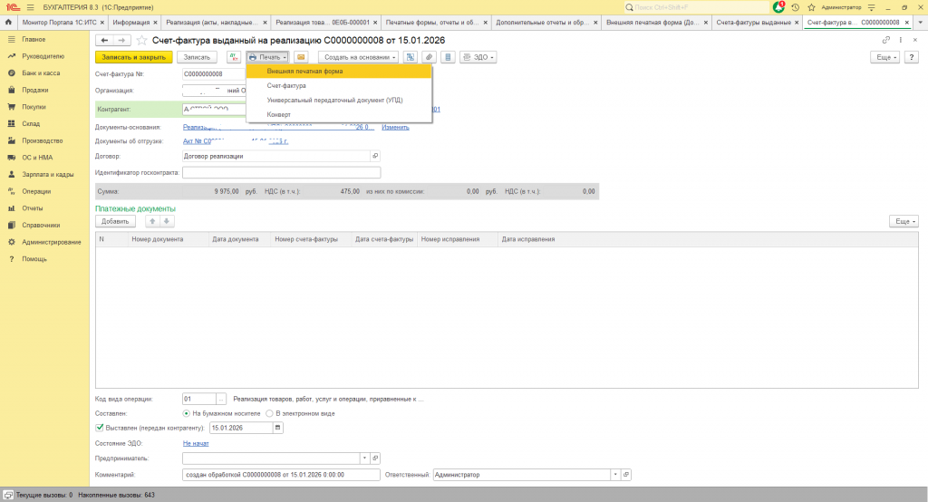 2. Добавляем в базу внешнюю обработку\внешнюю печатную форму.