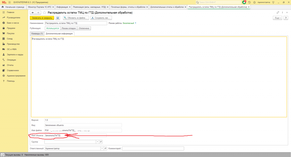 ВАЖНО!!! Имя обработки должно совпадать с Имя Объекта.