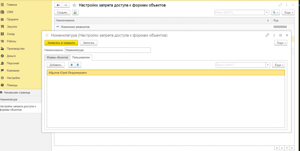 Настройка доступности элементов формы у пользователей