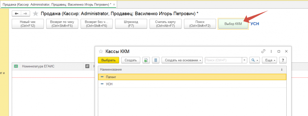 - переключения ККМ в чеке с сохранением табличной части.