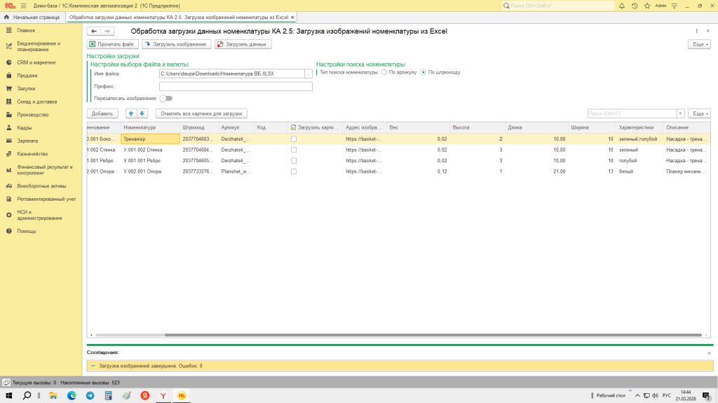 Загрузка изображений в справочник Номенклатура по ссылкам из файла Excel для КА 2.5