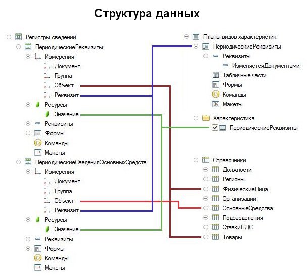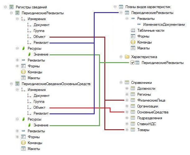 - плане видов характеристик "Периодические реквизиты", в котором описаны имена и типы значений периодических реквизитов;
