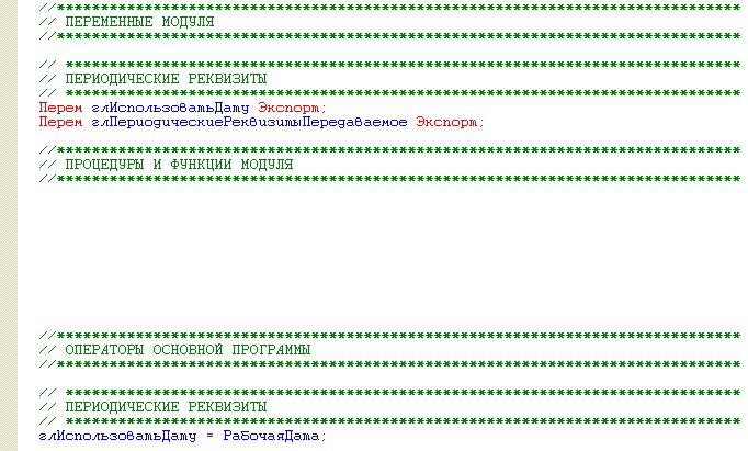 экспортные переменные глИспользоватьДату Экспорт, глПериодическиеРеквизитыПередаваемое Экспорт;