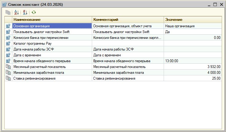 ПериодическиеРеквизиты.ПолучитьКонстанту(ИмяКонстанты, Дата); Возвращает значение периодической константы с указанным именем ИмяКонстанты