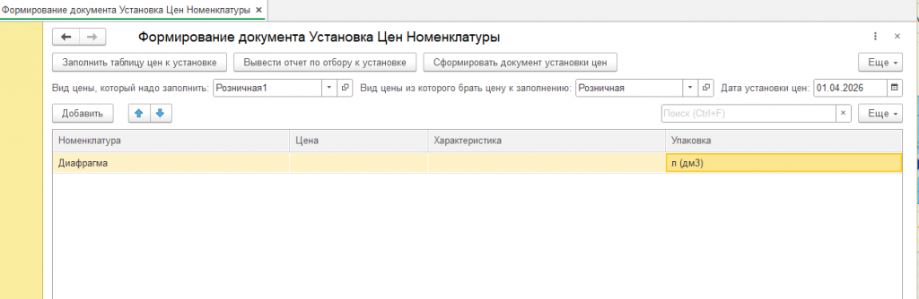 Формирование документа Установка цен номенклатуры для пустых цен одного вида копированием из другого вида для УТ 11.х (регистр Цены номенклатуры)