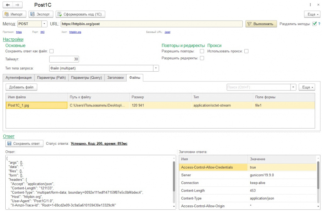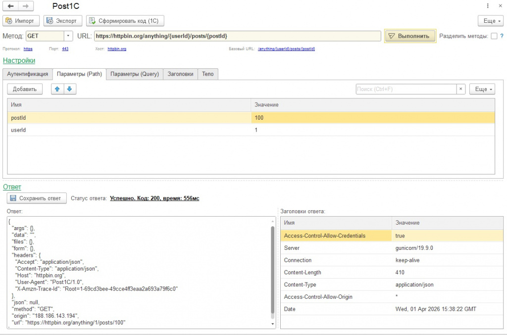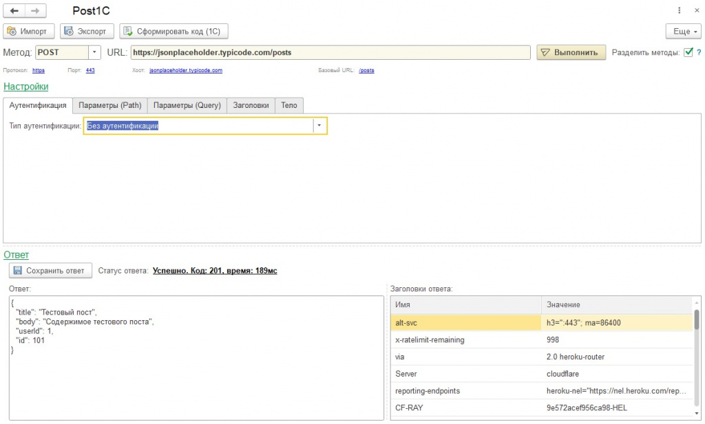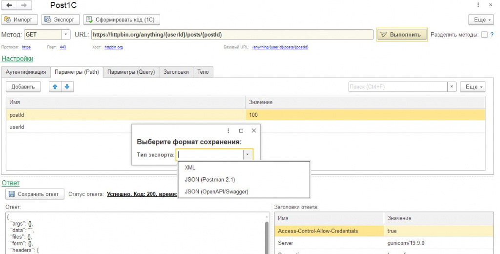 Post1С - аналог Postman на платформе 1С