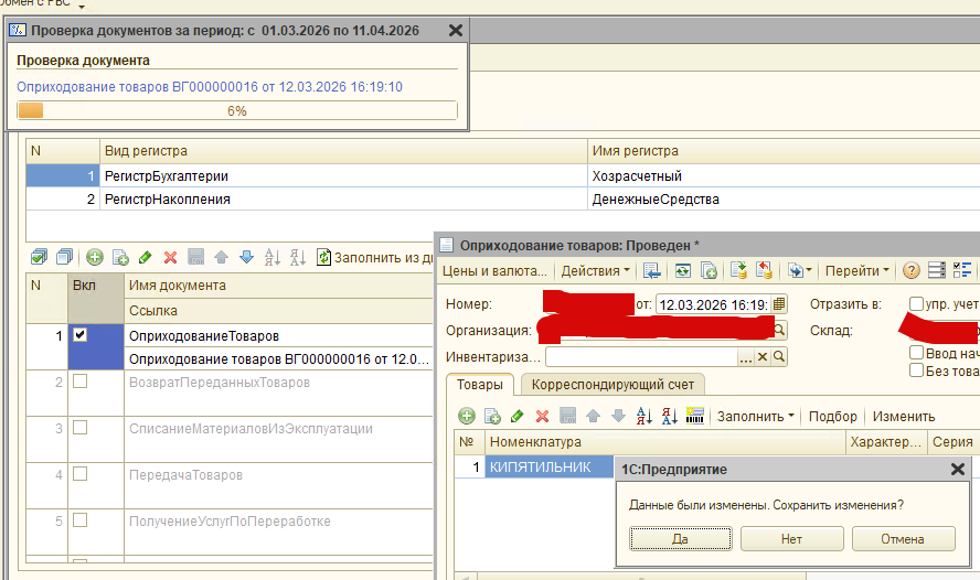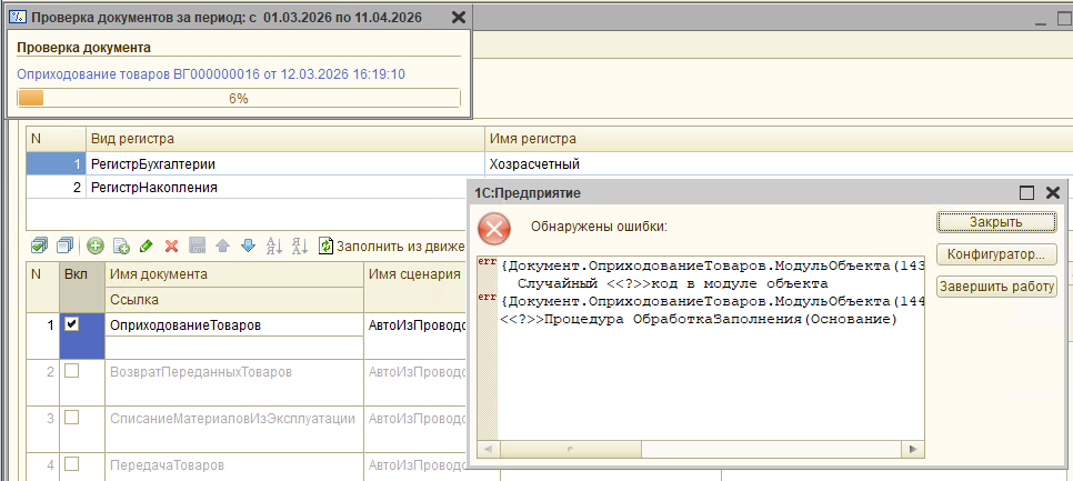 🔹 Проверка проведения/записи документов