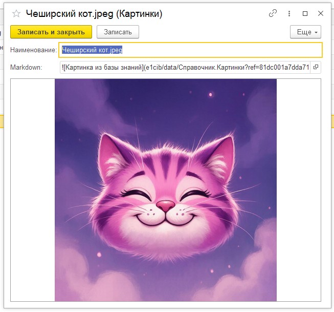 - Спасибо Игорь Матвеев(riposte) за статью Markdown-editor в 1С (с сохранением в HTML). Наработки из неё, за вычетом всего для меня лишнего, использованы в "Чеширском коте".