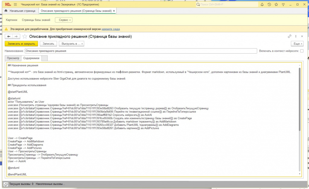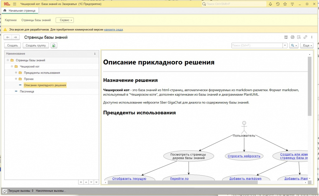 - Markdown. Каждая страница базы знаний представлена текстом в формате markdown, автоматически преобразуемым при записи в веб-страницу для отображения. (с версии #0.1.0)