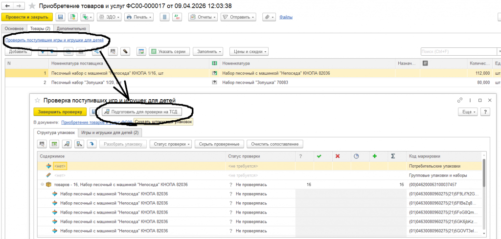 Проверка маркируемой продукции при поступлении: