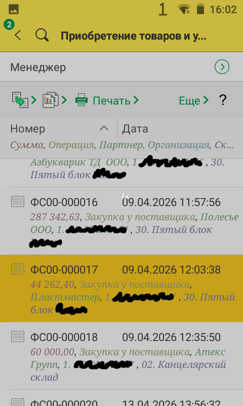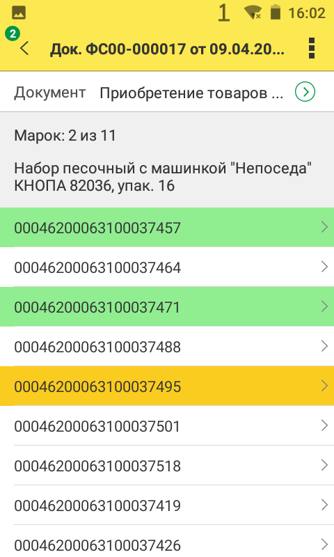 Сканируем штрихкоды упаковок, которые сверяются с загруженными из ЭДО в документе приобретения. Данные записываются после каждого отсканированного штрихкода, риск потери данных минимален.