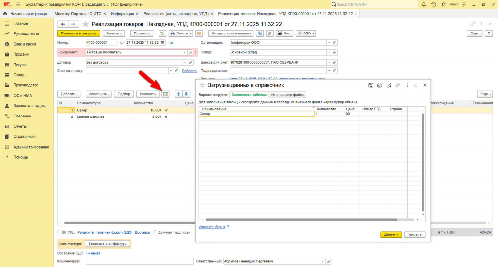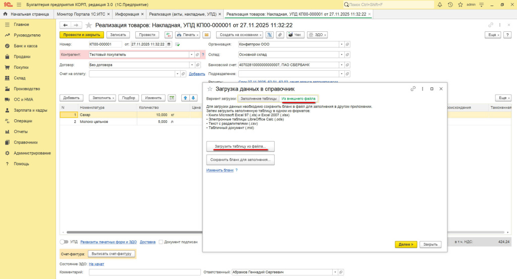Загрузка из Excel в основные первичные документы конфигурации в 1С:Бухгалтерия.