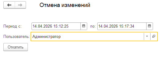 Данная обработка выполняет переход на предыдущие версии объектов при включенном версионировании. Отбор объектов выполняется по времени изменения и автору.