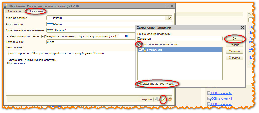 Данная обработка предназначена для массового формирования и отправки писем контрагентам с вложенными счетами на оплату в формате «.xls».