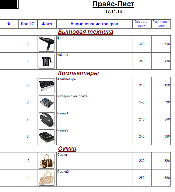 - Требуется показать картинки в отчете или печатной форме, например в прайсе.