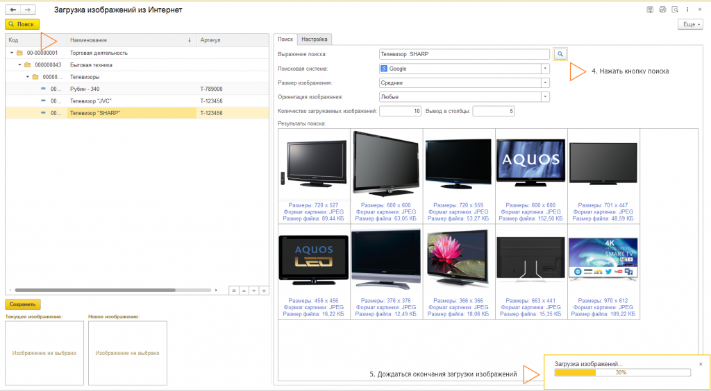 Наполнение справочника Номенклатуры изображениями для обмена с сайтом или формирования прайс-листов - занятие довольное утомительное. Предлагаемые в публикации обработки для конфигураций Управление торговлей версий 11.1 - 11.5, Розница 2.2, Управление небольшой фирмой 1.6 (управляемые формы) позволят в достаточной степени автоматизировать этот процесс, производя поиск изображений на поисковых интернет-сайтах и, буквально двумя кликами мышью, записывать эти изображения в базу данных.