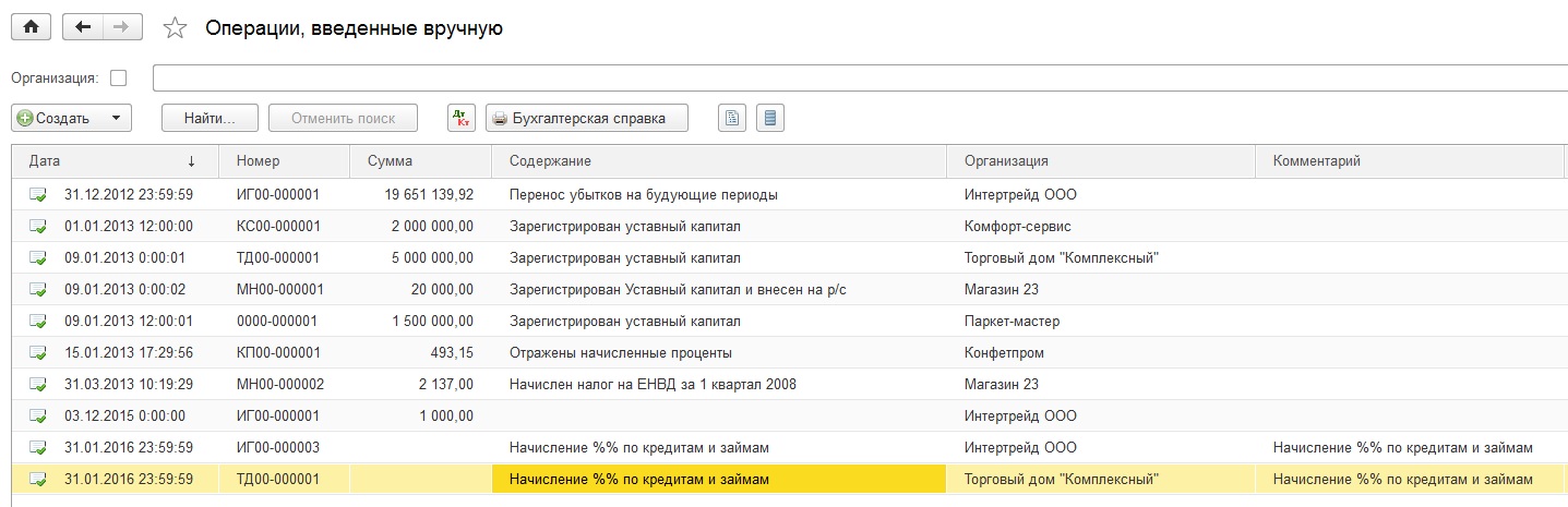Начисление процентов по следующим счетам: 58.3, 58.33, 66.3. При необходимости можно добавить нужные счета.