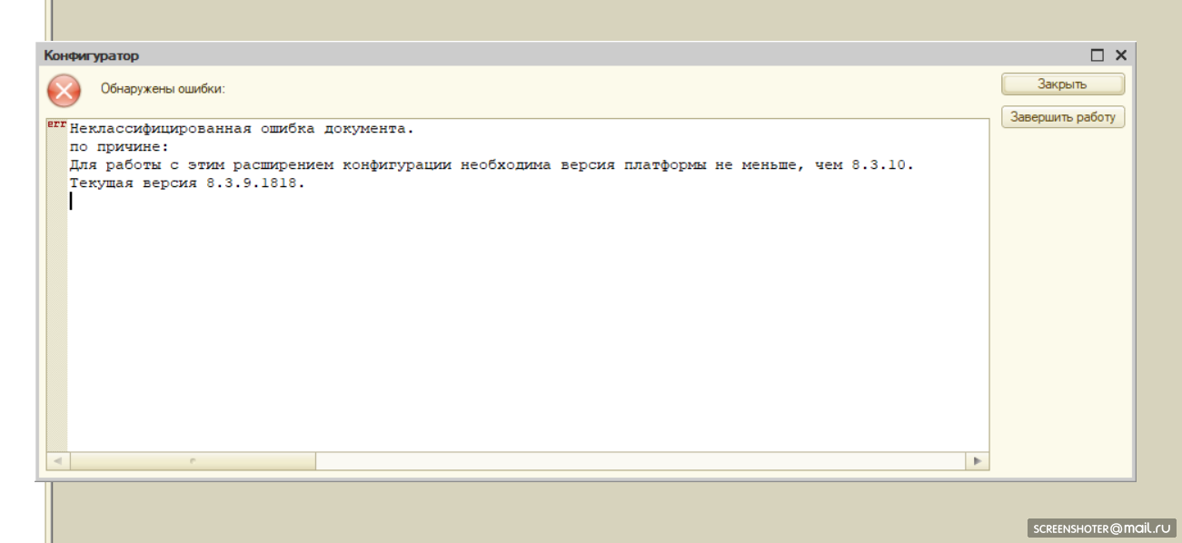 Для работы требуется версия платформы 1С Предприятие не ниже 8.3.10