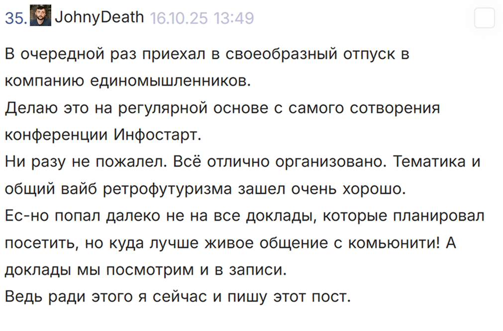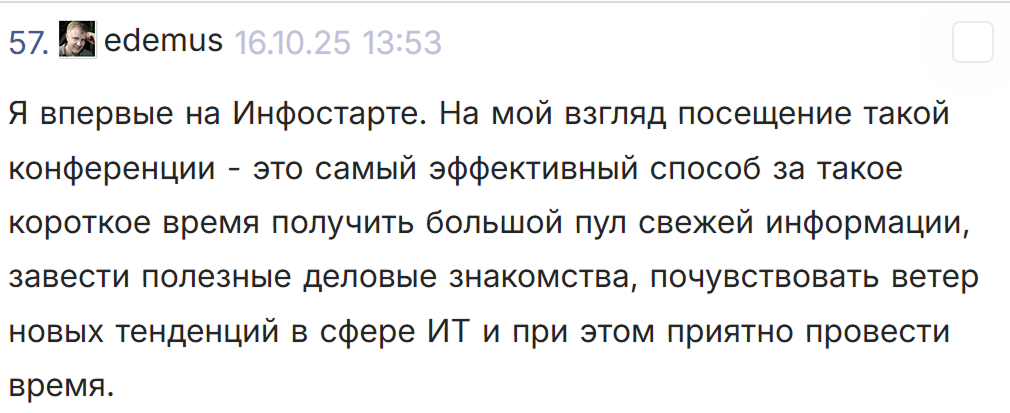 Докладчики конференции INFOSTART EVENT имеют особый статус и следующие привилегии на конференции: