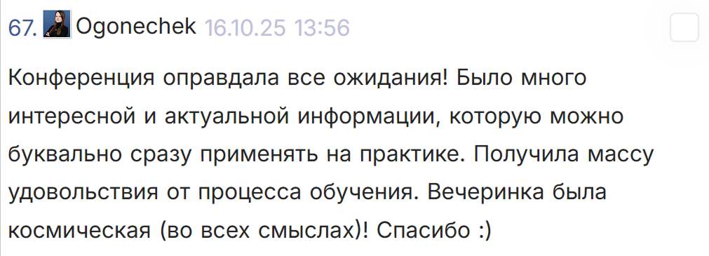 Докладчики, не прошедшие в финальную программу, получают скидку 30% на участие в конференции