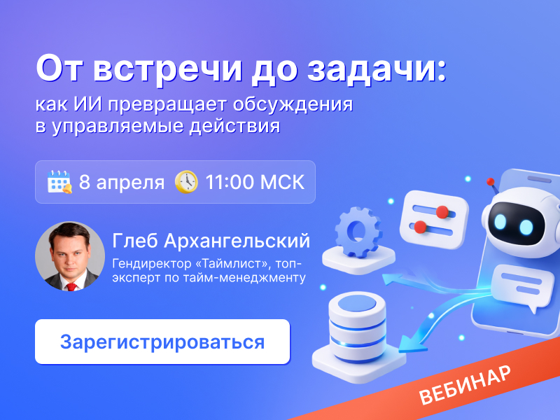 Поручения и идеи после встреч так и не реализуются из-за того, что их не зафиксировали «на бумаге»? 8 апреля покажем, как передать протоколы совещаний и контроль задач ИИ-ассистенту. Подключайтесь к вебинару и оптимизируйте работу команды.