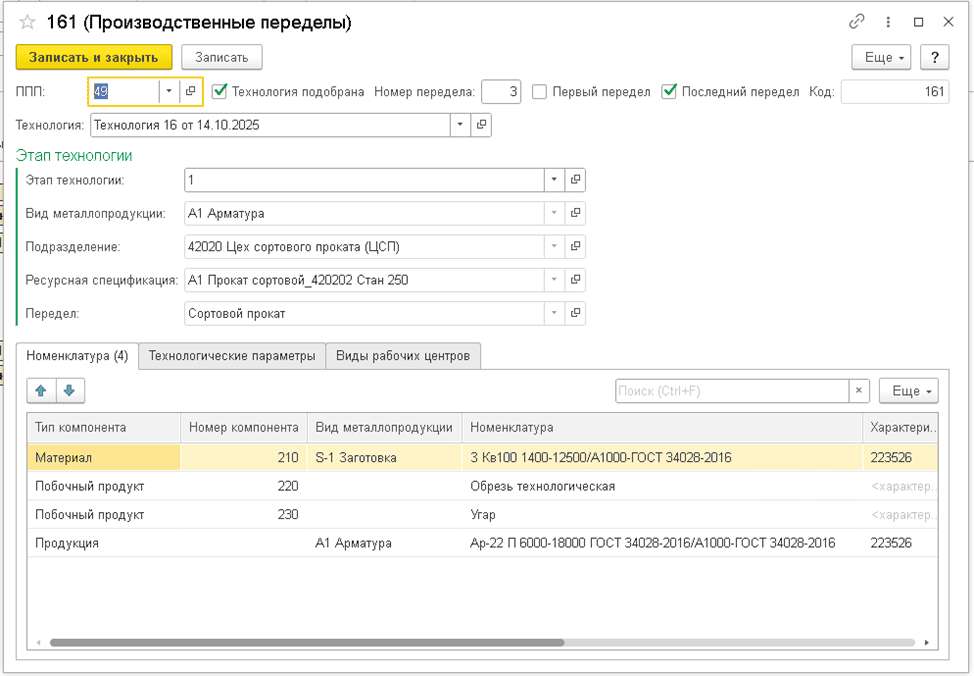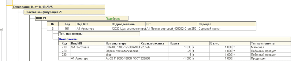 Формирование баланса металла и материалов в разрезе подразделений |