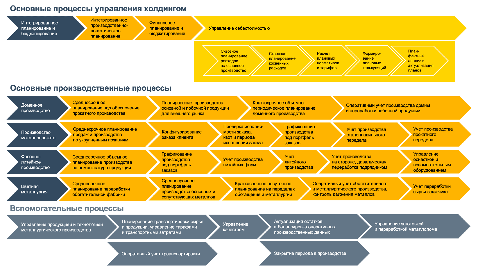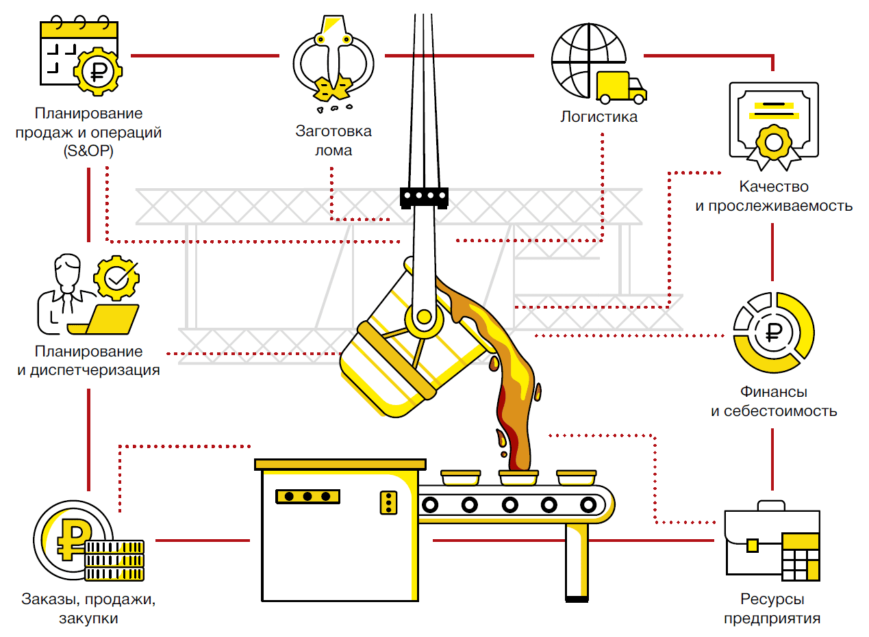 Новый отраслевой продукт 1С:ERP.УХ Металлургия КОРП позволяет управлять: