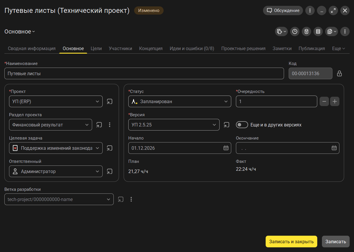 Для планирования и отражения изменений используется механизм технических проектов – они формируются на основе принятых требований и документируются с привязкой к изменяемым процессам, а также объектам логической и физической модели.