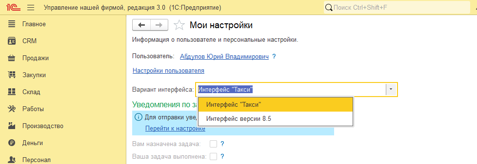 Предполагается, что версия 1С:УНФ 3.0.13 с новым интерфейсом 8.5 будет появляться в сервисе 1С:Фреш постепенно, начиная c 1 декабря 2025 года – сначала для части пользователей, а потом для всех. При этом для комфортного перехода останется возможность продолжить работу в привычном интерфейсе «Такси». По умолчанию после обновления будет доступен именно этот, уже знакомый пользователям, вариант работы с программой. А поменять вариант интерфейса можно будет через диалог «Настройки» – «Персональные настройки» – «Мои настройки».