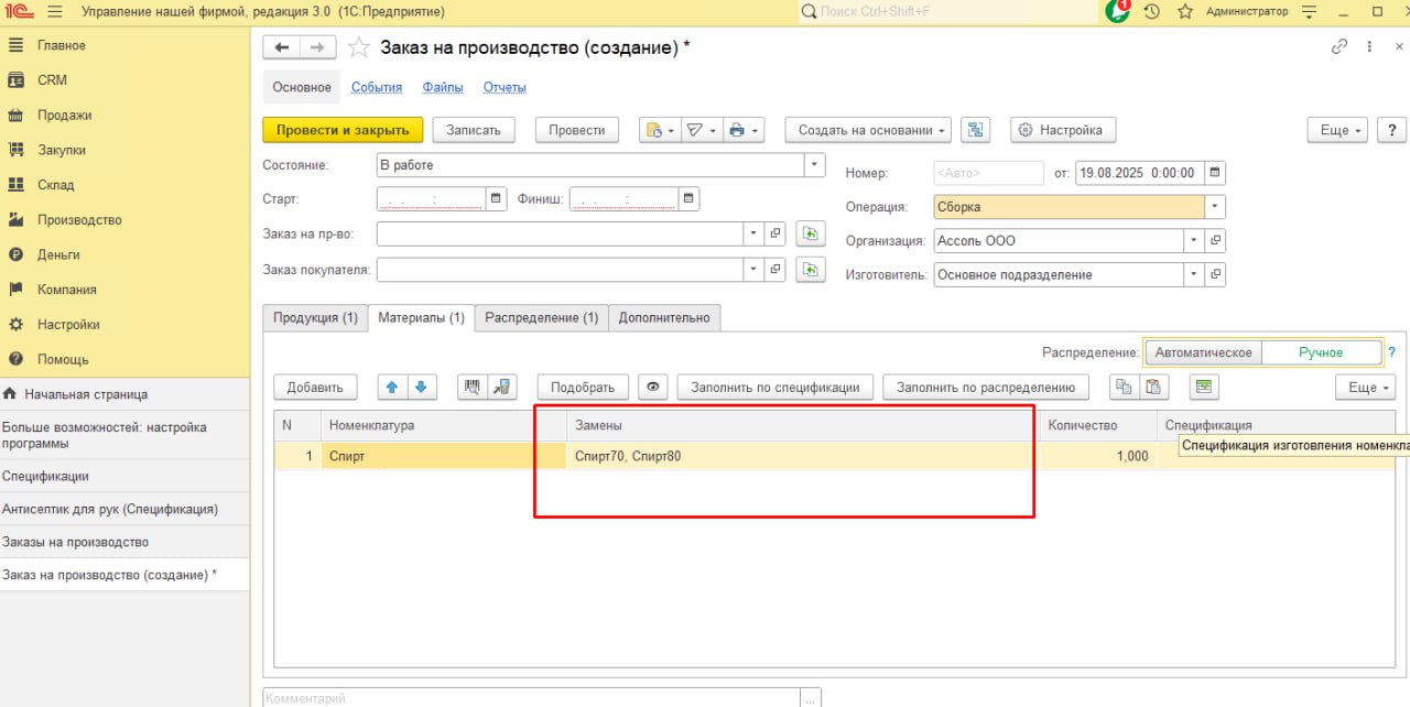 - Ускорилась реакция на необходимость замены материалов: все допустимые замены видны спецификацией в 1С и в Заказе на производство. Это разгружает менеджеров и ускоряет проведение замены.