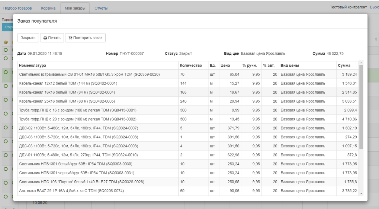 Отчеты и повтор заказа