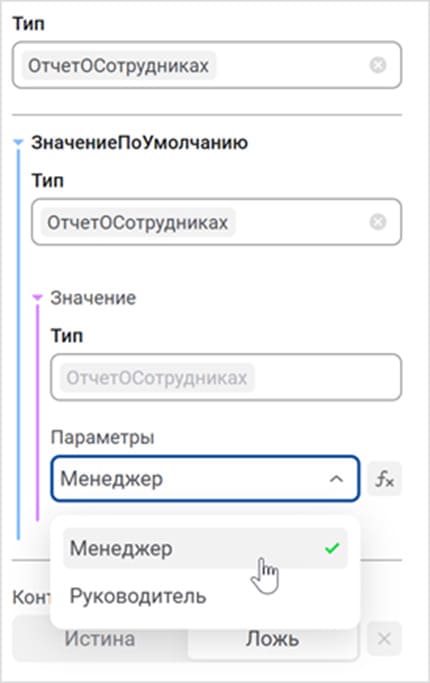 - реализован механизм привязки данных для параметров отчета – в свойстве Параметры типа Отчет можно указать значения параметров или настроить их привязку к полям ввода;