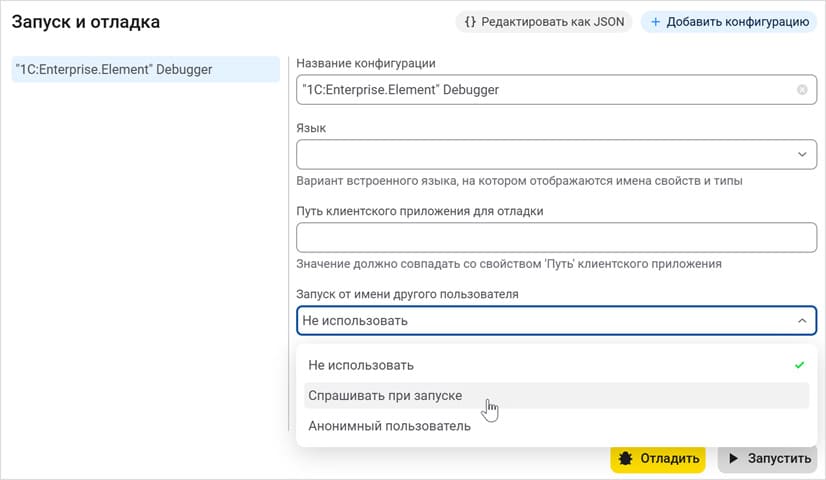 - появился новый параметр отладки, позволяющий запустить отладку от имени другого пользователя.