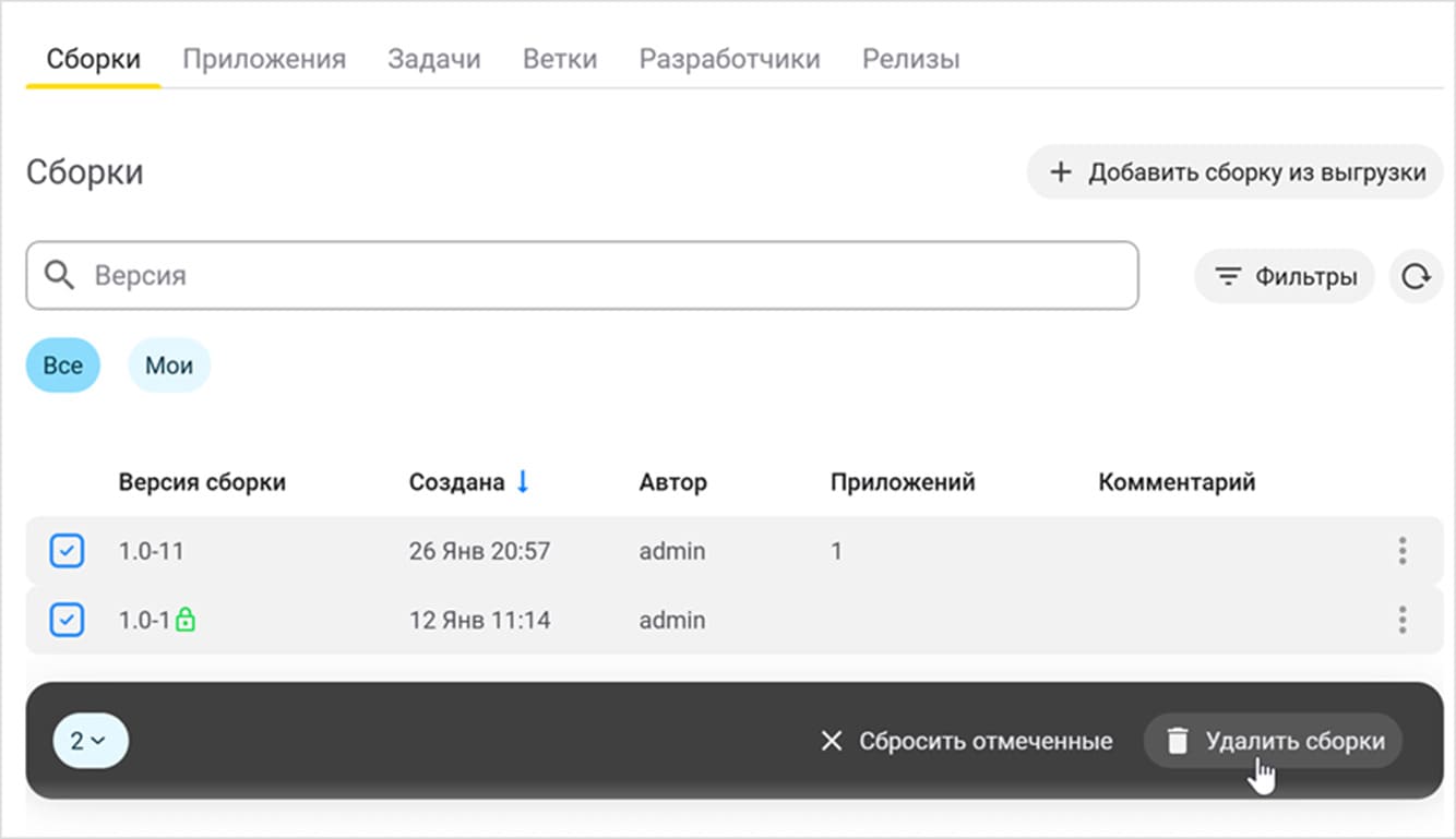 - для панели управления реализована поддержка групповых операций для сборок и релизов;