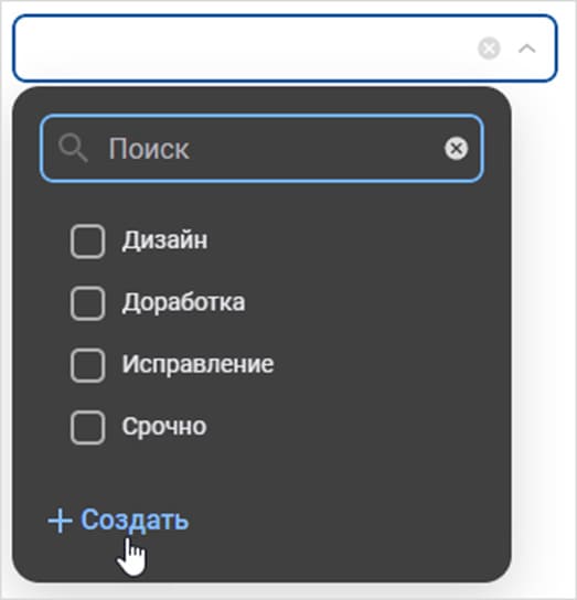 - создание элементов в выпадающем списке ссылочного поля ввода.