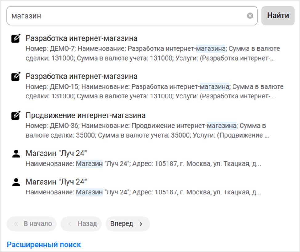 - основная и расширенная формы полнотекстового поиска данных;
