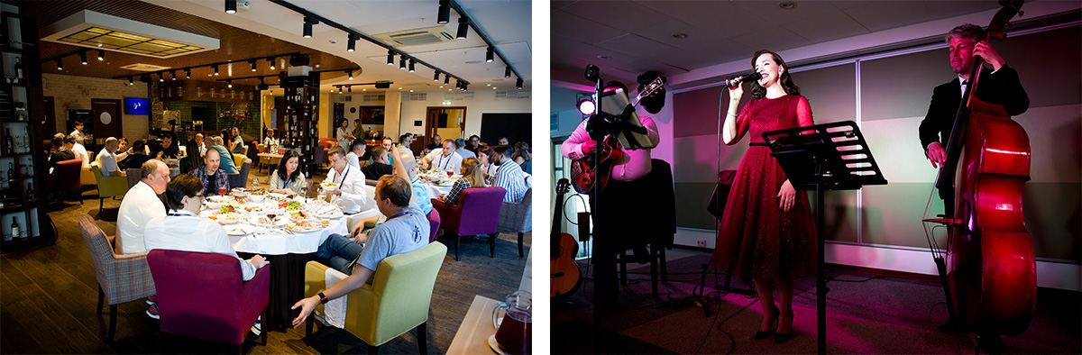 Вечером в программе – живая музыка, изысканная кухня и атмосфера, в которой можно продолжить разговоры, познакомиться ближе и обсудить то, что может перерасти в совместные проекты.