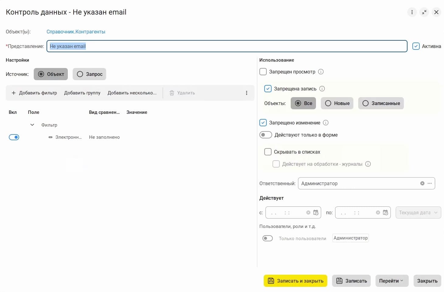 Все варианты проверок можно установить для конкретных пользователей или использовать отбор по ролям, профилям доступа или подразделениям.