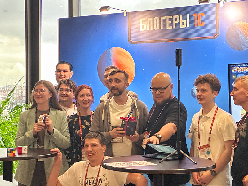 А в зоне с партнерами проходили розыгрыши призов. На стенде 1С-блогеров участникам вручили в подарок умную колонку «Яндекс.Станция Мини» и другие девайсы для умного дома.