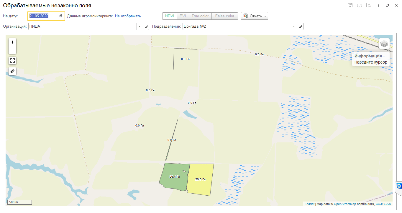 Еще одно направление, которое усиливает управляемость – агромониторинг. В системе доступны инструменты оценки состояния посевов на основе спутниковых снимков и вегетационных индексов, таких как NDVI и EVI.