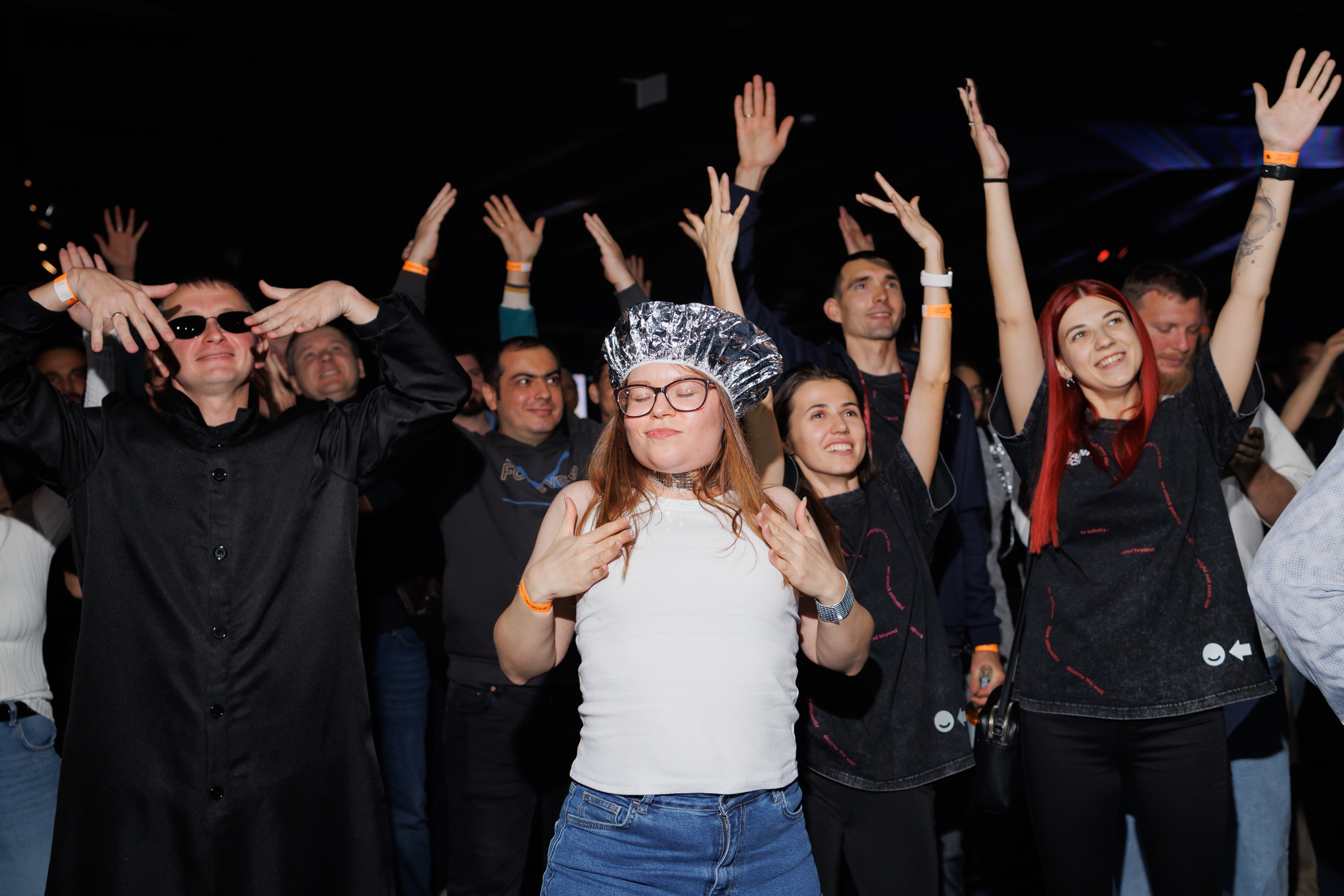 Вечер прошел космически круто: темой вечеринки, как и всей конференции, стал ретрофутуризм и фантазии о том, как выглядело бы будущее, глазами энтузиастов прошлого. Сценические шоу, конкурсы и интерактивы, девушки в костюмах стюардесс из «Пятого элемента» – все это создавало неповторимую атмосферу.